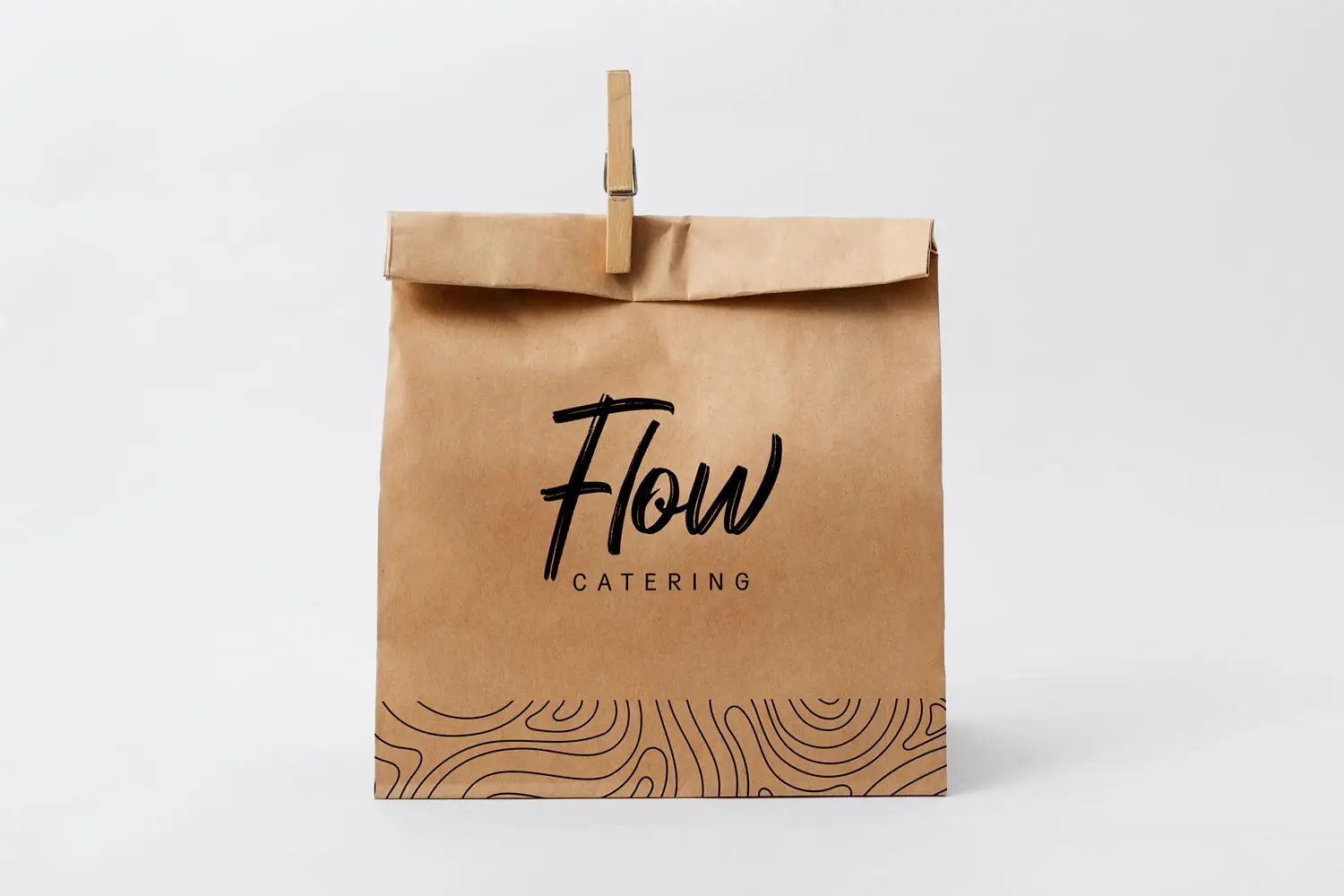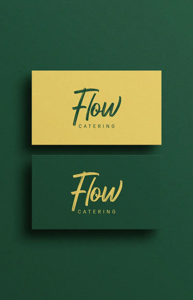 Projektując logo Flow catering zależało nam, aby było ono zachowane w nowoczesnej elegancji i lekkości. Centralnym elementem stał się dynamiczny, ręcznie stylizowany napis FLOW. Jego płynna forma odzwierciedla znaczenie słowa oraz podkreśla swobodę oraz naturalność, bliskie branży gastronomicznej.