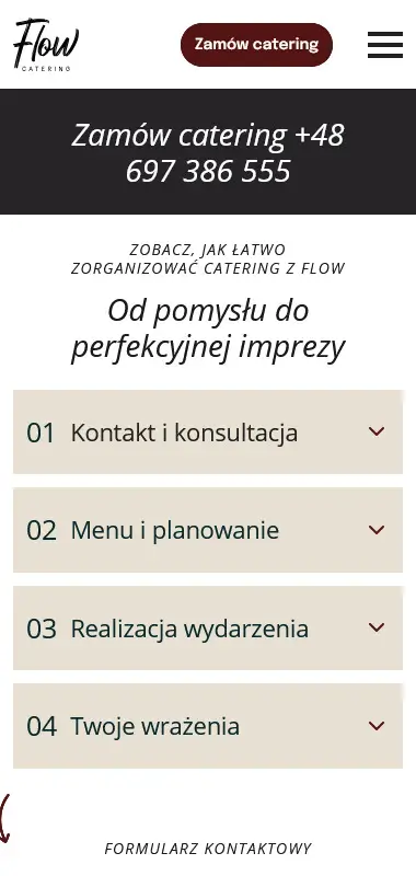 Zobacz stronę, którą przygotowaliśmy dla Flow Catering, firmy oferującej kompleksową obsługę gastronomiczną i catering na różnego rodzaju wydarzenia okolicznościowe.