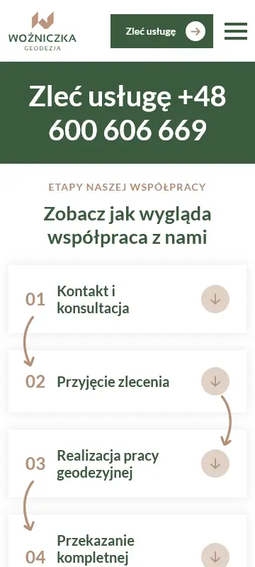 - Czytelna prezentacja usług geodezyjnych