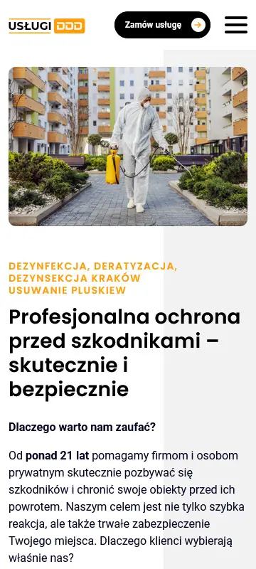 Zobacz stronę, którą przygotowaliśmy dla firmy Usługi DDD z branży usług higieniczno-sanitarnych, specjalizującej się w dezynfekcji, dezynsekcji i deratyzacji.