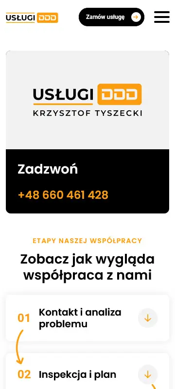 Istotnym elementem realizacji jest duża ilość merytorycznych treści, przygotowanych z myślą o widoczności strony w wyszukiwarkach. Rozbudowane opisy usług nie tylko wspierają SEO, ale także dostarczają użytkownikom konkretnych informacji na temat przebiegu prac.